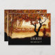 Une élégante carte postale Save the Date avec un arbre d'automne coloré et une lanterne festive donnant sur un lac romantique. Le côté arrière affiche la même scène d'automne avec deux images de champs facultatifs arrière - plan de texte. Si vous n'en avez pas besoin, vous pouvez les supprimer. (par exemple si vous utilisez des étiquettes d'adresse).