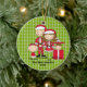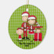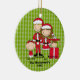 Ce sera un souvenir de tous les temps ! C'est une adorable famille habillée de tenues Père Noël rouges et de casquettes. Il a un arrière - plan vert clair avec des points verts foncés en rang. Il y a un papa, maman, une petite fille et un jeune garçon. Découvrez les autres combinaisons familiales et ornements de notre magasin. ©Illustrations JW
