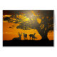 Un petit troupeau de cerfs s'installe pour la nuit sous un énorme chêne au coucher du soleil.