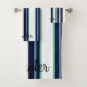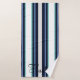 Adoptez une touche de sophistication avec notre serviette de bain à monogramme rayé bleu coloré. Le design met en valeur un grand nom de famille en monogramme dans une police cursive classique. Rehaussez le charme de votre salle de bain avec ce cadeau unique et personnalisé qui combine parfaitement des éléments modernes et classiques.