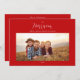 Un script élégant multi photo carte de voeux de vacances en famille. Cette carte de Noël est composée d'un simple arrière - plan blanc au texte rouge bordeaux. Les photos et le texte peuvent être facilement customisés pour créer votre propre carte de voeux de Noël de famille. Les images affichées sont uniquement à des fins d'illustration et peuvent être remplacées par vos photos. Tout le texte à l'avant et à l'arrière de la carte peut être customisé.