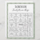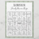 Profitez de ce jeu de bingo amusant lors de votre prochaine réunion de famille. Trouvez les matchs de votre propre famille pour vous amuser! ! Arrière - plan carrelé vert clair à noeud.
