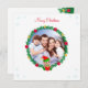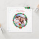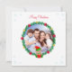 Cute famille personnalisée moderne, couronne de pin décorée avec l'elfe mignon et les flocons de neige Carte de voeux de Noël. Texte prêt à être personnalisé.