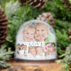 A snow globe keepsake for your family featuring a 4 photo collage on the front and "LOVE" in an elegant serif font. Add a 5th photo on the back.