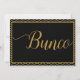 Des lignes créatives de couleur or encadrent le mot Bunco. Elégant et élégant noir et or couleur invitation Bunco. Invitation votre famille et des amis à une soirée amusante de Bunco.
