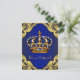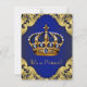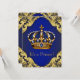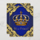 Baby shower royal bleu et or invitation avec couronne bleu et or sur un élégant arrière - plan royal bleu et or tourbillon. Cette magnifique invitation au baby shower princier bleu et or royal est facilement customisée pour votre événement en ajoutant simplement vos détails dans le style de police et la couleur, le libellé et la disposition de votre choix.