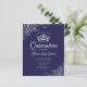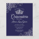 Ces invitations abordables et abordables Quinceañera sont le choix parfait pour la classe, le style et la beauté sur un budget. Le design est composé d'un arrière - plan marine ou bleu nuit, avec une couronne argentée et des boucles et tourbillons gris argenté dans les coins. La typographie comprend des lettres de script sophistiquées pour un style à la fois simple et élégant. Merveilleuse façon d'invitation vos amis et votre famille à partager en célébrant votre coing!