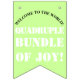 Un-of-a-kind Bienvenue dans le monde Quadruplets faire-part bannière en rose, vert, blanc pour la nouvelle petite fille. Personnalisez les drapeaux rose 2, 3 et 15, 16 avec les noms des bébés, les statistiques de naissance, les photos et les numéros de quadruplet. Ou, laissez de mignonnes images de pieds de bébé telles quelles. Quadruple Bundle of Joy est écrit en blanc Stencil sur arrière - plan vert à gauche de la bannière. Belles bannières de fête avec de grands drapeaux robustes pour être accroché à l'extérieur ou peut pendre à l'intérieur dans une grande zone. Photographie originale et design graphique Copyright © 2010, 2018 TamiraZDesigns. Tous droits réservés. Visitez mon magasin pour obtenir des articles plus uniques à l'adresse suivante : www.zazzle.com/tamirazdesigns*