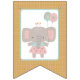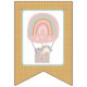 Sur les bannières de bunting Up, Up et Away, il y a de charmantes illustrations de petites filles et d'amis animaux avec des ballons et certains à cheval dans une montgolfière. La petite fille est assise dans la corbeille du ballon, portant une robe rose. À côté d'elle se trouve un ours mignon, regardant avec excitation. La montgolfière est joliment décorée avec un arc-en-ciel rose, jaune et bleu. Les images sur cette bannière de bunting sont ludiques et fantaisistes, parfaits pour une douche bébé fille et correspondent à la collection Girl & Bear in Hot Air Balloon. Recherchez d'autres éléments de cette collection à ajouter à votre baby shower.