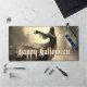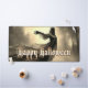 Un fantôme noir sombre et flottant à la forme éthérée, entouré de nuages denses de brume, survolant dangereusement le sol dans un paysage sombre et désagréable à l'atmosphère sinistre. Joyeux Halloween