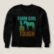 This Farm Girl Tough turquoise long sleeve sweatshirt celebrates the spirit of western life — early barn mornings, cold chores, and endless love for horses.