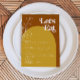 Ce menu mariage est composé d'un arrière - plan orange brûlé, d'une arche couleur moutarde, de fleurs de terre pour enfants et d'une police à thème amusante des années 70. Ce menu super pour le dîner est parfait pour un mariage rétro, un baby shower ou tout autre événement spécial. Toutes les couleurs sont modifiables, il suffit de cliquer sur le bouton bleu "modifier à l'aide de l'outil de conception" pour customiser les couleurs correspondant à votre événement. Associez-vous à tout ce qui se trouve dans la collection FARRAH pour un look cohésif.