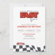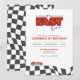 Race Car Birthday Invitation – It's a Fast One - Racing Theme First Birthday Party Invite with Checkered Black & White Flag Design
