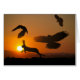 Faucons de Harris. Harris colportent est le seul oiseau de proie qui chasse dans des groupes de famille comme des loups. Trois faucons de Harris chassent vers le bas un lièvre. Le feu du coucher de soleil derrière eux. Art d'ordinateur par Kathie Miller.