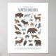 Parfait pour les jeunes explorateurs et les amoureux de la nature, cette affiche aidera à identifier les animaux sauvages d'Amérique du Nord. Chaque animal est dessiné à la main avec une texture unique. Faites entrer la nature dans votre maison et décorez un mur de la chambre de votre enfant avec cette image éducative.