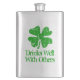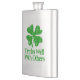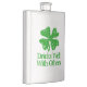 Fausse fiole de boisson de la Saint Patrick pour la fête irlandaise. shamrock vert Vintage avec texte personnalisé. Poignardé à quatre feuilles de trèfle avec du lettrage grungy. Ajoutez votre nom ou une citation humoristique. Don de fiole à boisson métallique.