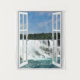 Belle vue de cascades, scène de fenêtre de faux, pour un mur sans fenêtres de bureau. Amusement, tenture pittoresque réaliste d'illusion optique pour un bureau ou mur d'étude.