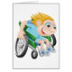 Illustration de bande dessinée d'un garçon heureux emballant dans son fauteuil roulant