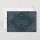 Cet ensemble de faire-part de mariage chic est orné d'un arrière - plan bleu foncé et d'un cadre géométrique simili doré composé d'éléments botaniques. À l'arrière se trouve un luxueux faux design doré. La typographie moderne ajoute une touche élégante à ce design minimaliste de Kitty Pie Prints.