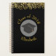 Un planificateur quotidien personnalisé qui dit aussi : Classe de 20xx, écrit en texte courbe. Conçu avec une fausse parties scintillant de confetti en or. Placez-vous sur un arrière - plan noir. Illustré avec un capuchon de graduation noir avec un cercle semi-transparent derrière.