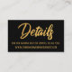 Gardez vos invités mariages dans la boucle avec tous vos détails avec ces jolies et complètes cartes d'encarts pour mariage. Ces jolies cartes reflètent un style élégant et décontracté. Les superpositions de texte élégantes ont été conçues à l'aide d'une police de script moderne, audacieuse et décontractée agrémentée d'un effet de feuille d'or faux. L'un dit "Save the Date" et l'autre dit simplement "Details". Utilisez les champs modèles pour customiser ces cartes de boîtier avec vos informations personnelles. Imprimé à l'aide de la "technologie carte de visite", la taille pratique sera facile à garder à portée de main. Envoyez-les avec vos envois traditionnels, et gardez quelques-uns autour pour les partager avec ceux qui ont besoin d'un ou deux supplémentaires! L'arrière - plan est recouvert d'un noir sophistiqué et cette couleur modifiable peut être changée en n'importe quoi de votre palette de mariage que vous choisissez; tout texte modifiable apparaît dans une teinte dorée complémentaire. // 89 // Conçu par Melody Watson pour Paper Muserie.