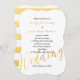 Élégant Faux Gold Foil Glamour | Invitations Mariage Élégantes. Conception par Elke Clarke©. Autres styles et couleurs disponibles dans notre boutique www.zazzle.com/monogramgallery. Un simple script d'écriture manuscrite avec le mot "mariage" orne ce style de faire-part de mariage classique mais moderne. Le texte est entièrement personnalisable. Le motif rayé or et blanc sur le dos peut être retiré ou une couleur ou un motif différent peut être demandé. Vient avec une enveloppe blanche vierge. La feuille d'or est un effet photo imprimé.