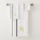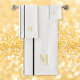 Créez votre propre modèle personnalisé, personnalisé, cool, classe, élégant, classique, noir de course rayures design, moderne, minimaliste, élégant faux or typographie script police monogrammed initial sur blanc couleur arrière - plan, tendance, lavable machine, ensemble de serviette de bain qui comprend serviette de bain 30" x 60", serviette de bain 16" x 28" et 13" x 13" Toile de 3". Pour customiser, tapez simplement votre monogramme / initiales. Faites un grand cadeau personnalisé pour l'anniversaire, la fête des pères, la fête des mères, le mariage, la remise des diplômes, noël, les vacances, les nouvelles années, et plus encore, pour vos proches, enfants, petits-enfants, maman, papa, grand-père, grand-mère, frère, soeur, fils, fille, oncle, tante, mari, épouse, marié, amis et famille.