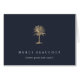 Des notes de remerciement chic ou des cartes pour notes présentent un riche arrière - plan bleu marine orné d'une illustration de palmier tropical en fausse feuille d'or. Personnalisez avec votre texte personnalisé sous la forme de lettres blanches classiques. Montré avec l'expression française de remerciements, "merci beaucoup", et une deuxième ligne sous pour votre nom, nom d'entreprise ou message personnalisé. Videz à l'intérieur pour votre message manuscrit ; ou ajoutez un message préimprimé personnalisé de votre choix.