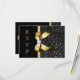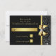Cartes de réponse personnalisées élégantes en noir et or avec une belle image imprimée en noir pailleté, des sequins, des bijoux, un motif de pierres précieuses, des images de rubans et de nœuds dorés brillants et de jolis diamants numériques bling sur un fond noir classe. NOTE IMPORTANTE : Il s'agit de graphiques imprimés plats - aucune partie en relief. Ces cartes de réponse plates, classe, glamour et clinquantes sont décorées/imprimées des deux côtés. De belles cartes de réponse chic, tendance et modernes pour tout événement : mariages, baby showers, bridal showers, fêtes de remise de diplômes, fêtes d'anniversaire pour femmes, fêtes sweet 16, célébrations de quinceañera, etc. Le texte, la police et la couleur de la police peuvent tous être personnalisés. Si vous avez besoin d'aide pour personnaliser votre produit, veuillez