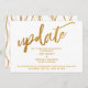 La distinction de cette suite audacieuse et simple est due à la police manuscrite moderne et décontractée utilisée pour les phrases d'accent et au motif de vagues lâches placé sur l'arrière-plan. Les vagues évoquent l'idée de banderoles de fête. Dans ce morceau, la police manuscrite a été utilisée pour créer un graphique représentant le mot "update". Ce texte de titre et le motif de fond ont été embellis avec un motif de feuille d'or faux. Utilisez les champs de modèle pour ajouter vos informations personnelles et rendre ce design festif vôtre. Le fond blanc peut être changé en n'importe quelle couleur que vous préférez. N'hésitez pas à nous contacter pour toute demande spéciale ou pour une aide à la personnalisation. // 100 //