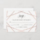 Cette carte RSVP de mariage simple et élégante présente un diamant d'or faux rose sur un arrière - plan blanc, et une typographie moderne en noir.