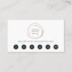 Les cartes de fidélité chic pour les maquilleurs, les esthéticiens, les coiffeurs ou les salons présentent votre nom d'entreprise à l'intérieur d'une feuille d'or rose élément cercle abstrait sur un arrière - plan blanc. Ajoutez votre offre de fidélité client avec six cercles punchout et personnalisez le dos avec vos coordonnées.