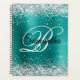 Faux parties scintillant argent brillant avec étincelles contre une imitation turquoise et turquoise ombre en métal brossé image graphique. On peut customiser le monogramme de calligraphie noir et blanc au centre. Tous les éléments brillants et brillants de ce design girly moderne sont des graphismes numériques. Un cadeau précieux pour son anniversaire.