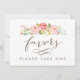 Cette impression présente des roses florales aquarellées et dit "Faveurs. Veuillez en prendre un."