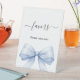 Fond blanc élégant, orné d'un grand ruban bleu. Texte : Favoris. S'il vous plaît, prenez-en un !