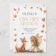 Fée d'automne Premier anniversaire Invitation avec un renard et une pixie avec des ailes et des feuilles d'automne