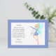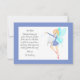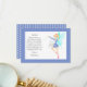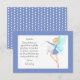 Ces jolies petites cartes de remerciement de la fée des dents ajoutent un peu de magie lorsqu'ils grandissent et perdent leurs dents. La carte représente une fée habillée de bleu, portant une dent et agitant sa baguette, il y a une bordure bleue, le dos de la carte comporte des étoiles blanches et un modèle de lettre qui peut être modifié à votre guise. Tous les styles de police de texte, la taille et les couleurs peuvent être modifiés en cliquant sur le lien de personnalisation supplémentaire après la personnalisation.