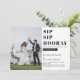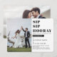 Élégante invitation de fiançailles "Sip Sip Hooray" 2 photos avec une photo sur le devant et la deuxième photo au dos. Personnalisez en remplaçant la photo et le texte.