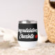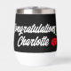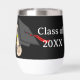 Fête de graduation en noir et blanc, belle fête de graduation en verre de vin noir et blanc pour une célébration pour un diplômé d'un lycée, d'un collège, ou d'une université avec classe de 20xx en blanc sur noir avec casquette de graduation et le nom du diplômé.