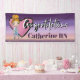 Symbole de félicitations moderne pour les caractéristiques d'une infirmière mignonne qui a obtenu son diplôme de l'école de soins infirmiers. Elle a un grand coeur et aime prendre soin des autres. Polices de style typographique. Monogramme avec nom des diplômés. Purples, roses, noir et bleu. Faux parties scintillant or look. Félicitations à la nouvelle infirmière autorisée de la RN.