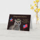 Félicitez quelqu'un d'avoir terminé l'entraînement de base avec un adorable raton laveur souriant, portant un casquette militaire à côté d'un drapeau américain et d'une étoile mignonne. L'Arrière - plan est assez bordeaux. Laissez-les maintenant combien nous sommes fiers d'eux et combien ils sont appréciés.