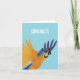 Cette carte de voeux est conçue pour une personne qui célèbre une réalisation ou un jalon. Il présente une macaw bleu et jaune vibrante en plein vol, avec ses ailes larges. Le mot "CONGRATS" est affiché en haut en lettres majuscules blanches. L'arrière - plan est d'un bleu clair et simple. L'oeuvre évoque des sentiments d'excitation, de triomphe et de jubilation tropicale. La pose dynamique de la mâchoire suggère énergie et succès. Cette oeuvre d'art entre dans les catégories Célébration/Félicitations et Animaux tropicaux/exotiques.