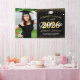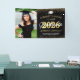 Banderole élégante de graduation avec un arrière - plan noir élégant qui peut être changé à n'importe quelle couleur, un mortier, parties scintillant d'or cascade, l'année 2023 dans une fausse feuille d'or, le nom des diplômés, collège/université, et leur réalisation.