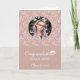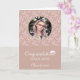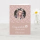 Félicitations Pink Rococo Carte photo de la Graduation. Elégant motif rococo rose, casquette de graduation, texte personnalisé et une photo dans un cadre rond. Ajoutez votre photo et votre message à l'intérieur.