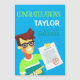 Les couleurs comprennent un arrière - plan bleu vif, du texte vert citron, blanc et bleu.
