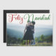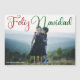 Belle carte magnétique photo de la famille Feliz Navidad avec belle calligraphie en rouge et vert. Cette carte magnétique de photos de Noël espagnol de vacances modernes présente un script magnifique et votre nom en blanc sur la photo de fond saigné.