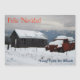 Une scène hivernale rurale avec un vieux camion rouge délabré et couvert de neige assis près d'un cabine délabré près de Sandpoint, pièce d'identité. Le texte espagnol "Feliz Navidad" apparaît également en rouge. Ajoutez votre propre texte supplémentaire.