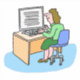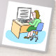 Illustration de l'employé du bureau. Dessin d'une employée de bureau à son bureau. Sticker montrant une femme blanche travaillant dans un bureau sur son ordinateur.