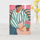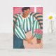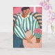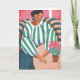 Carte de vœux illustrée élégante représentant une femme détendue assise dans un fauteuil confortable à côté d'une petite plante à fleurs roses. L'art pictural moderne aux rayures audacieuses et aux couleurs chaudes crée une atmosphère calme et artistique - parfaite pour envoyer des notes attentionnées, des encouragements ou des salutations quotidiennes. Œuvre originale de Caroline Bonne Müller