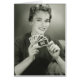 Femme souriante tenant des cartes à jouer en studio, (B&W), portrait | George Marks | AssetID : 57520357